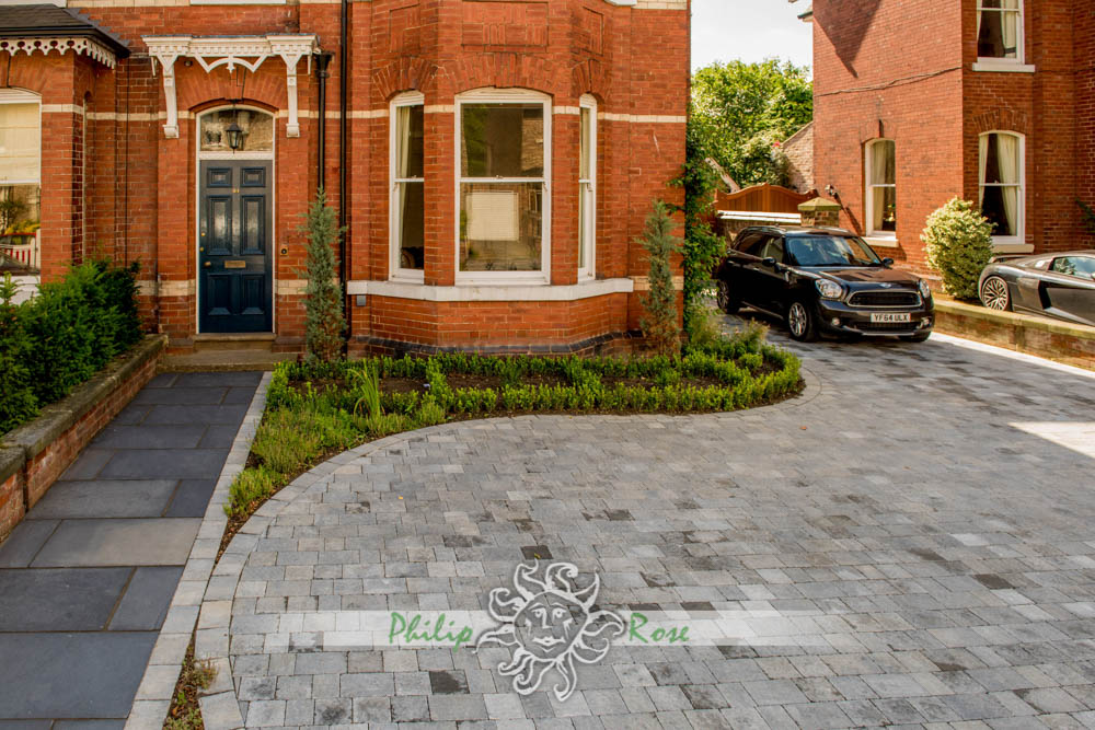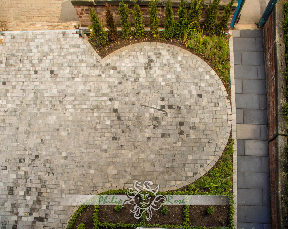 All paving is laid in the same way on a base of compacted hardcore and a bed of gritsand and cement. It is then wet pointed and haunched.